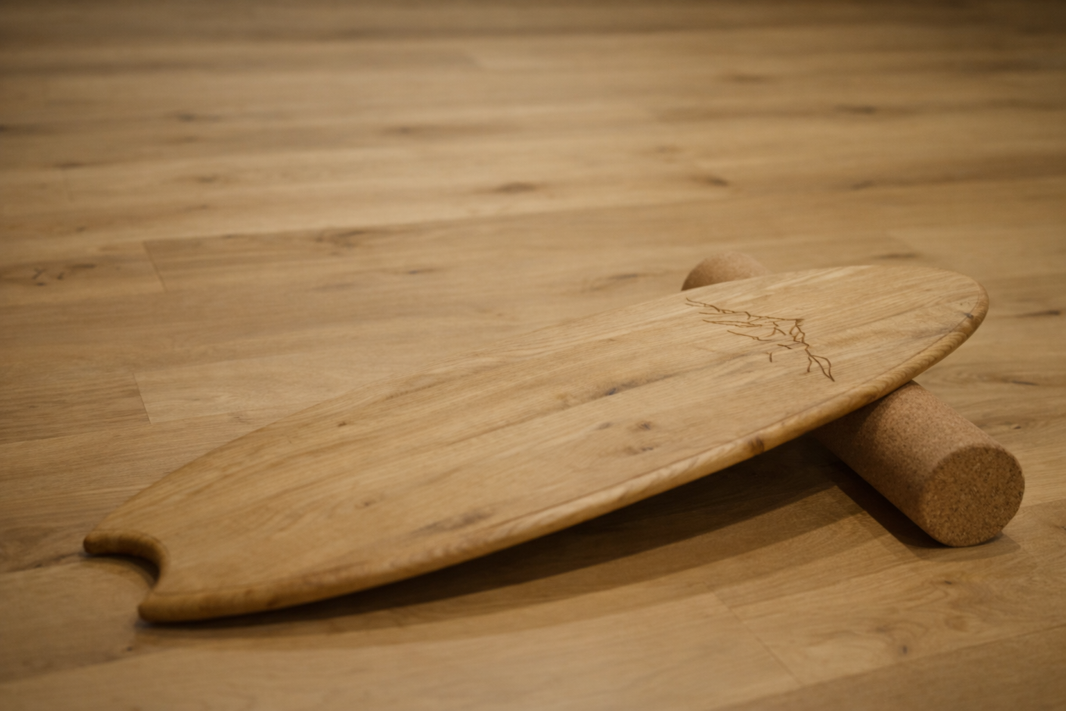 Balance Board -Mountain- Set aus massiver Eiche – inkl. Rolle & Halter